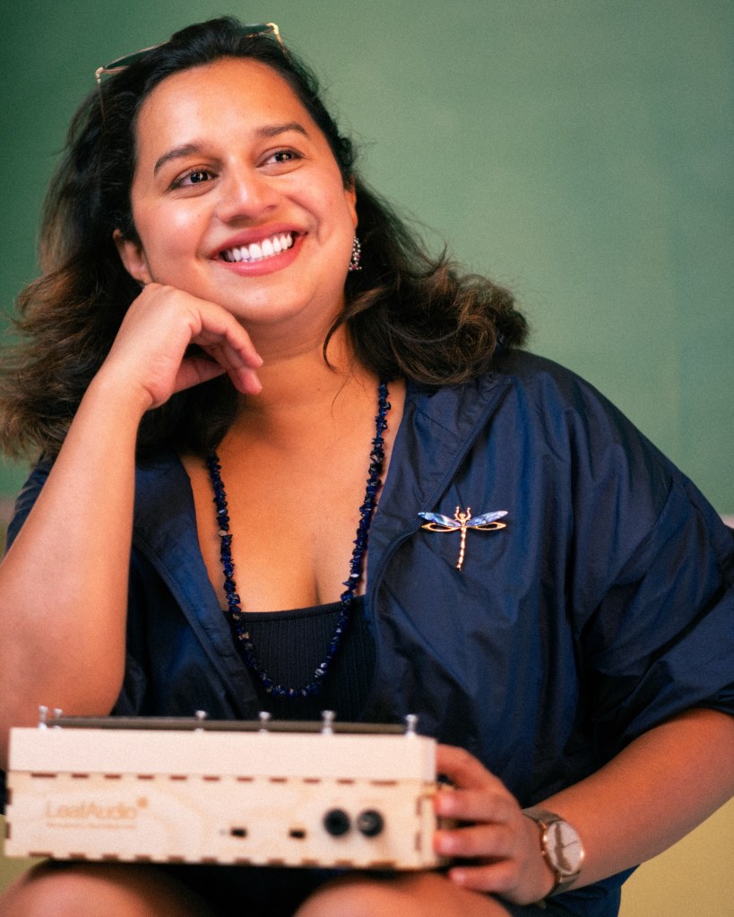 She trained in north indian classical singing from a young age, and later, western classical composition. In addition to being a vocalist, she plays the harmonium and other instruments.